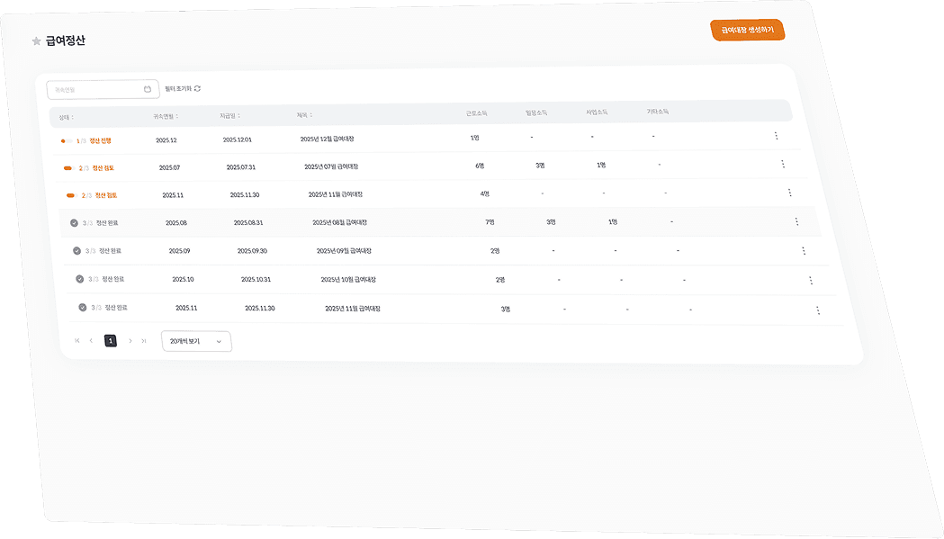 임직원 관리부터 급여 현황 파악, 급여 정산 및 명세서 발송까지