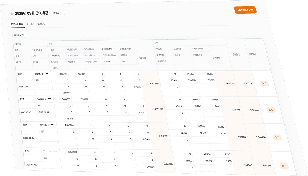 “정확한 급여 계산과 빠른 4대보험 처리로 업무 효율이 크게 올랐어요”